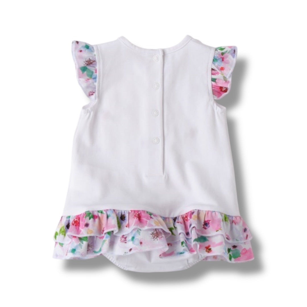 Pagliaccetto giromanica in 100% cotone colorazione bianco e multicolor
