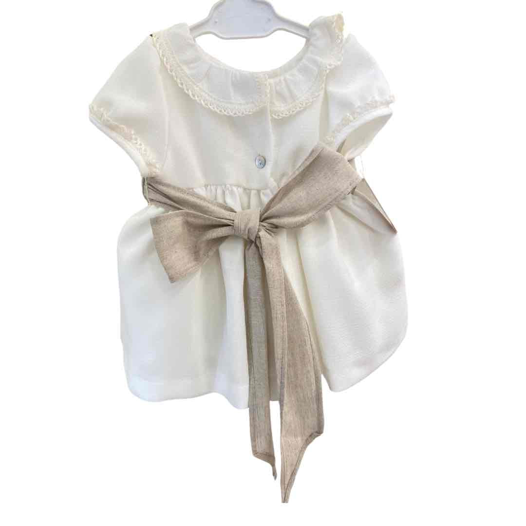 Abito semplice ma allo stesso tempo da favola con abbottonatura sulla schiena e maxi fiocco in lino
