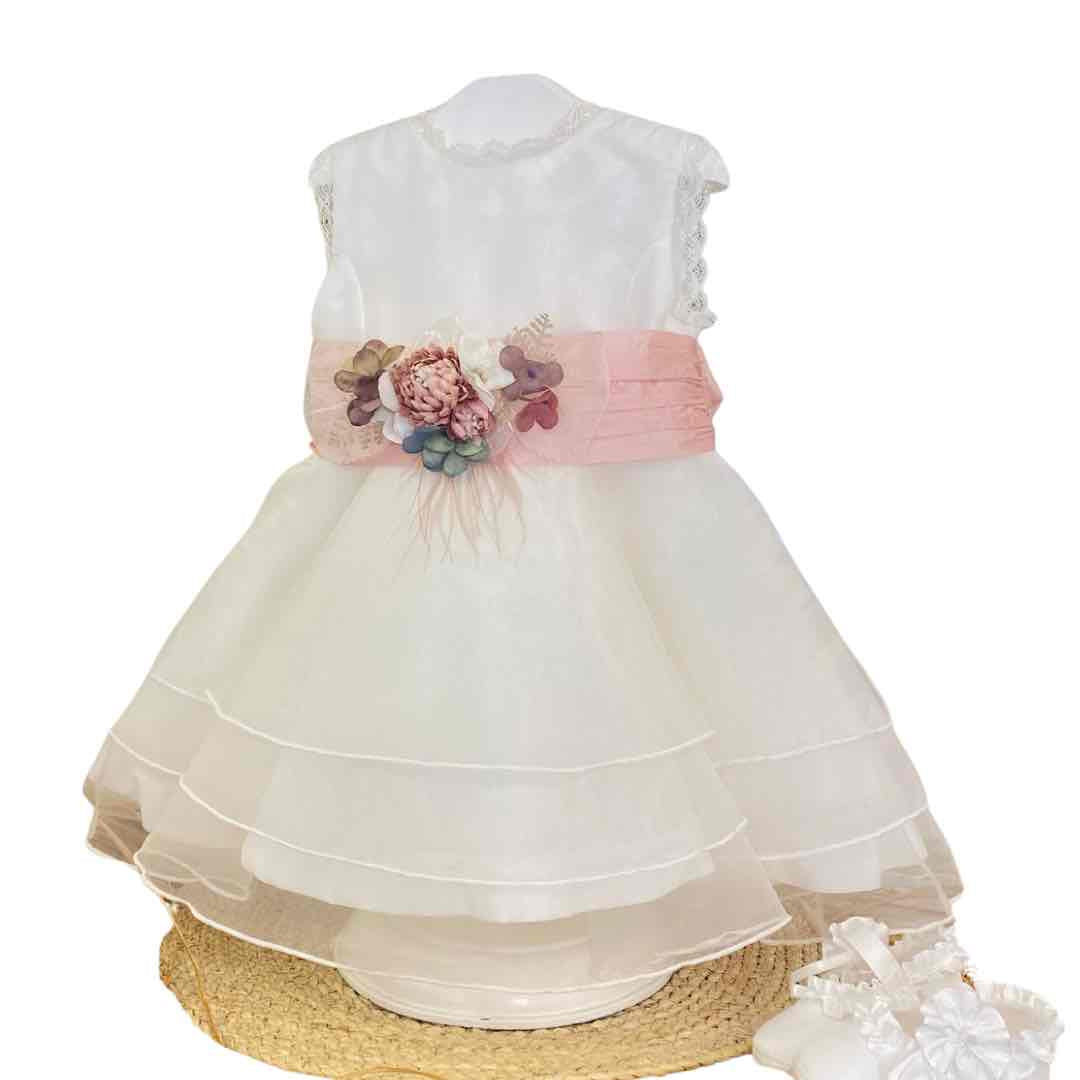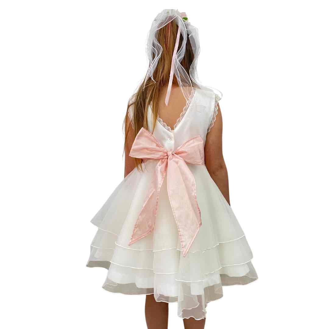 Gonnellone in tulle, abbottonatura sulla schiena e scollo a V retrostante