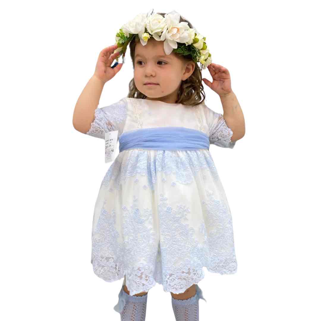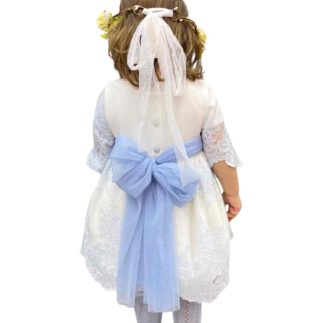 Abito in Pizzo ricamato su Tulle, Azzurro cenerentola.