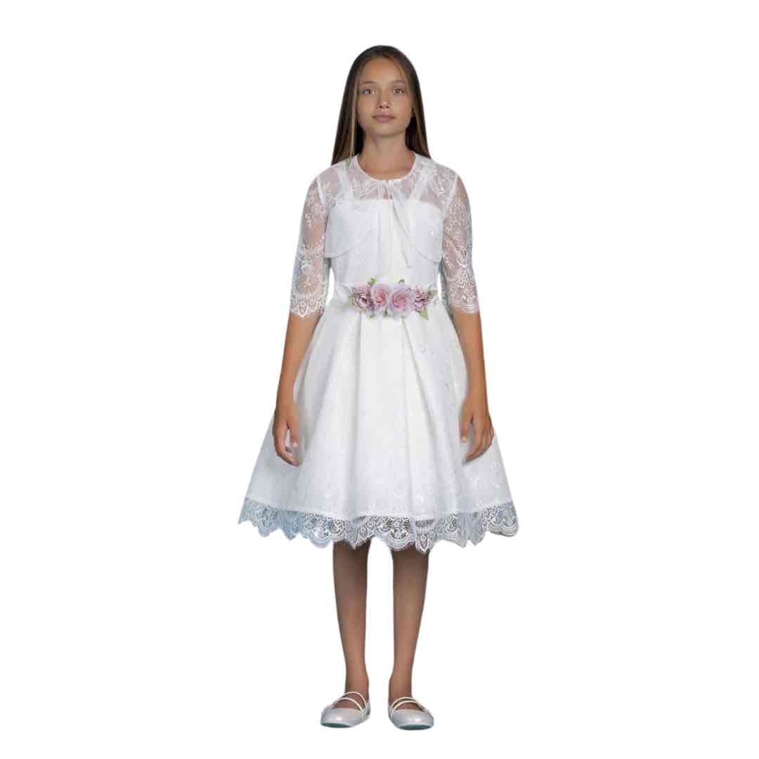 Abito principesco con tulle e merletti, coprispalle in coordinato