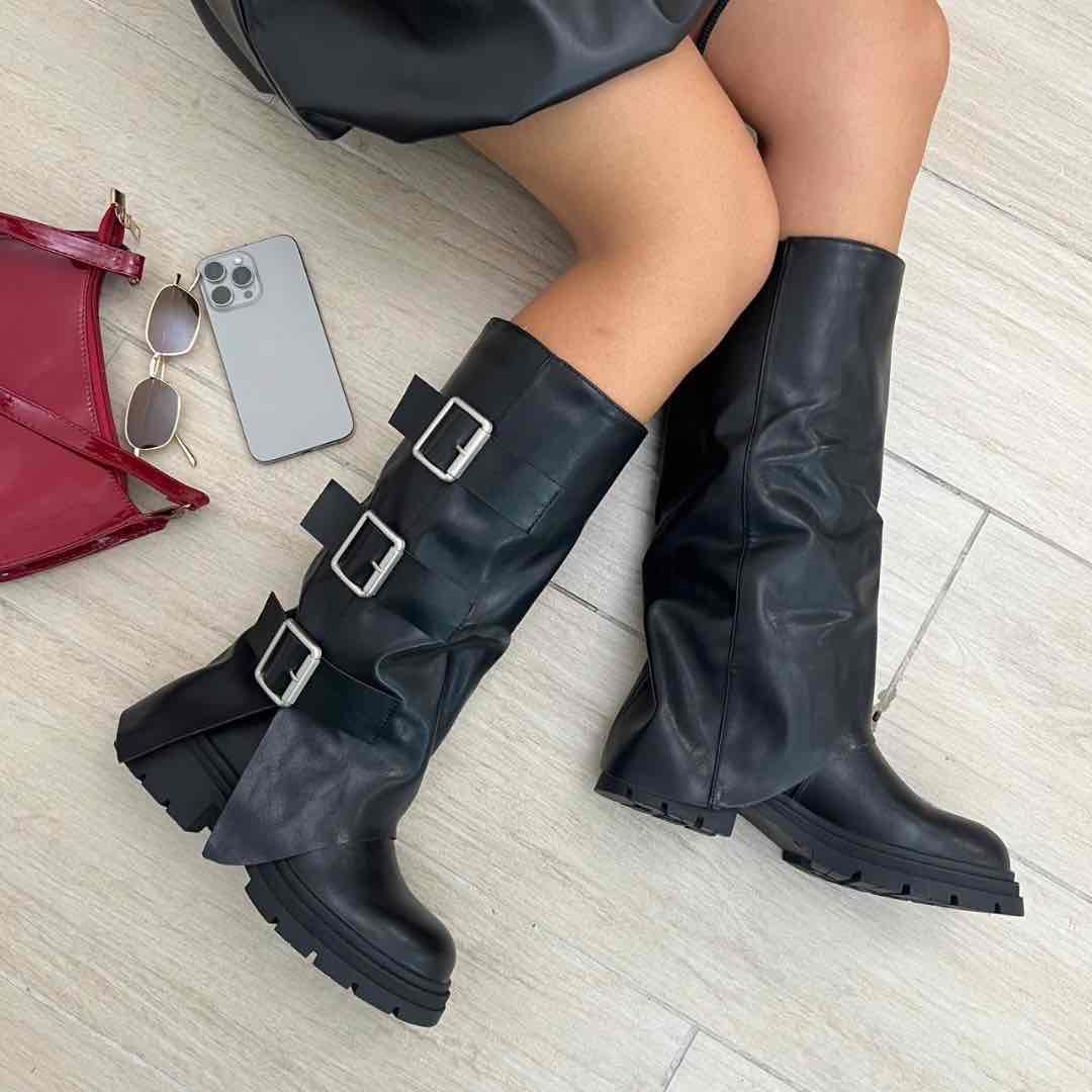 Anfibio in ecopelle con fibbie argento.