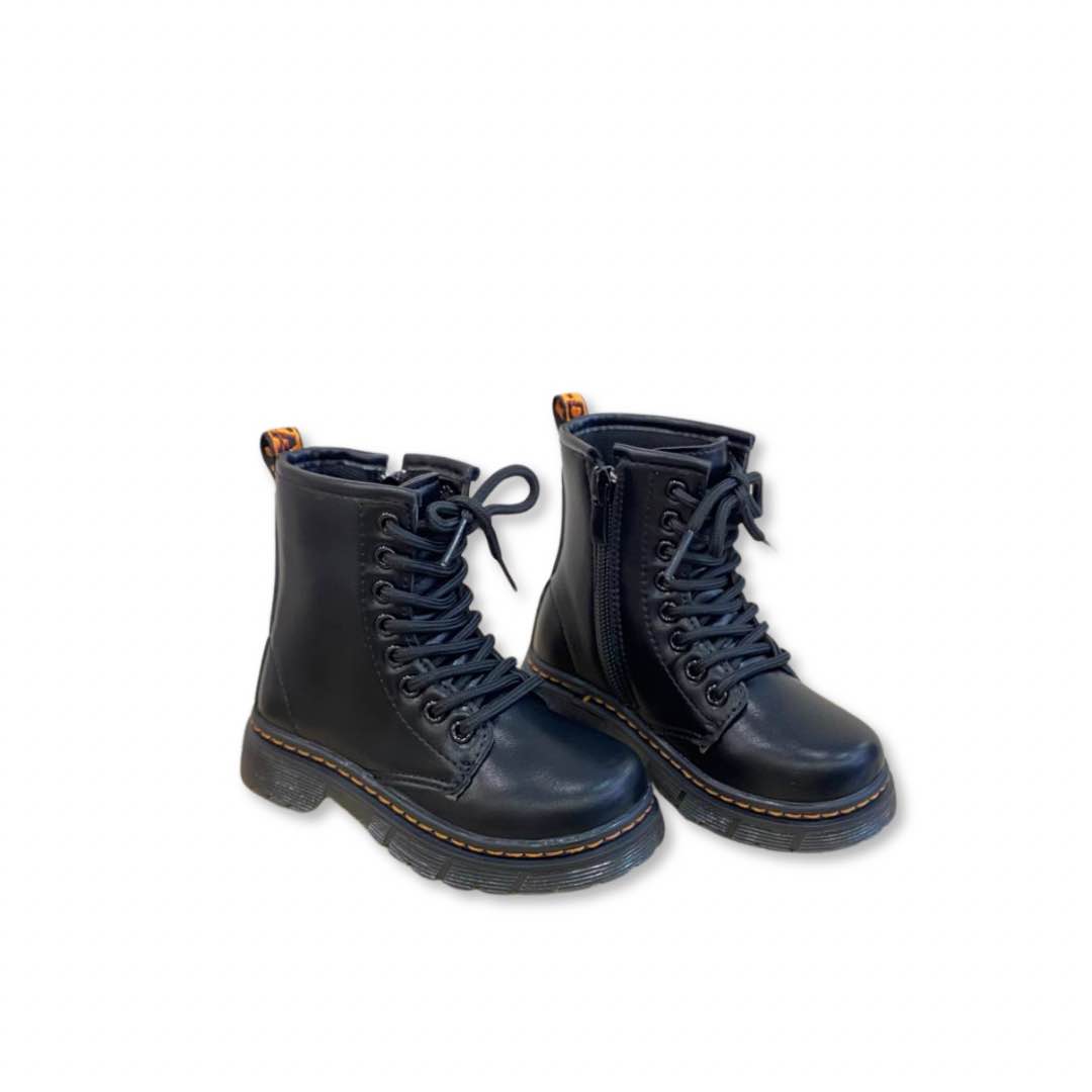 Stivaletto nero in ecopelle con lacci e rifiniture in arancio.