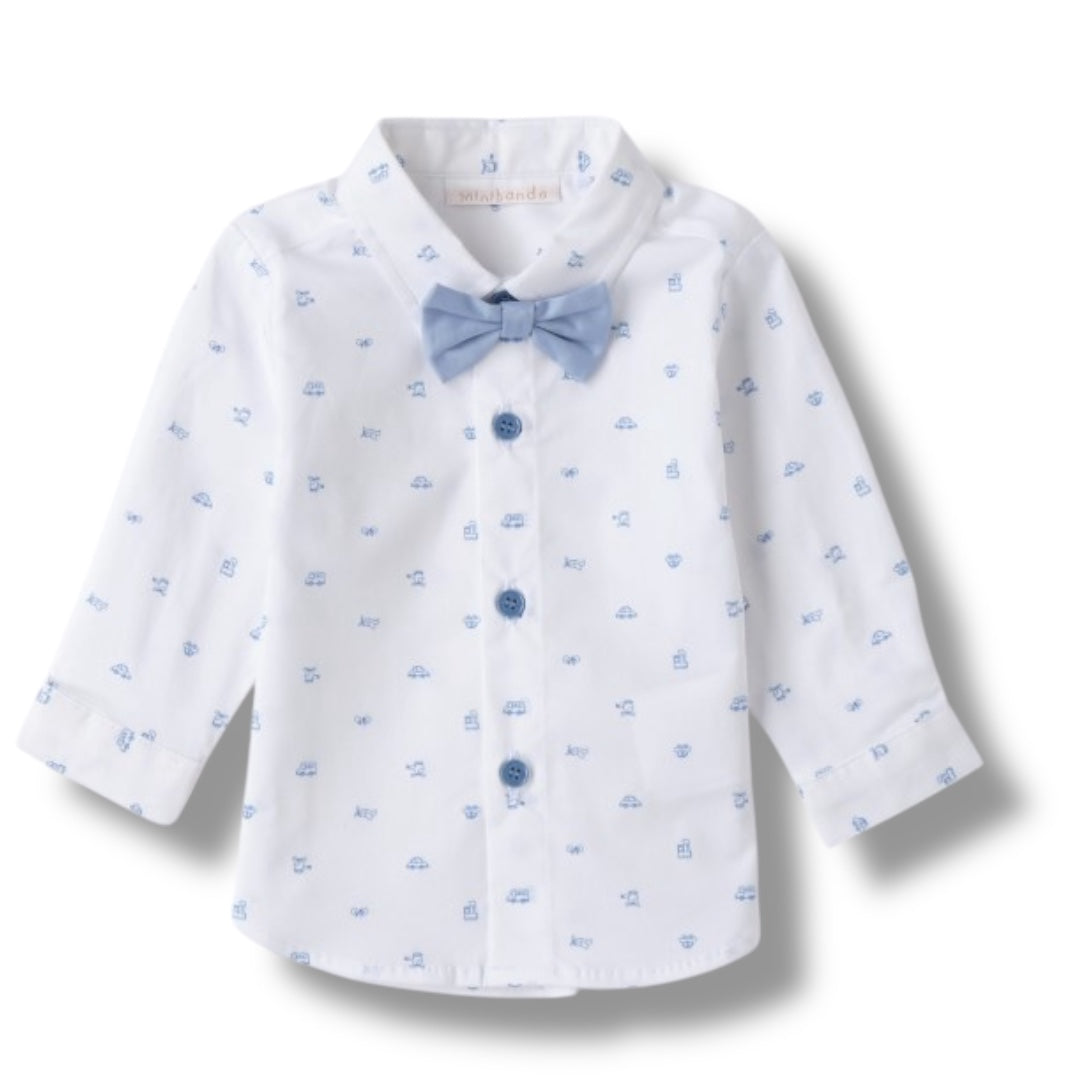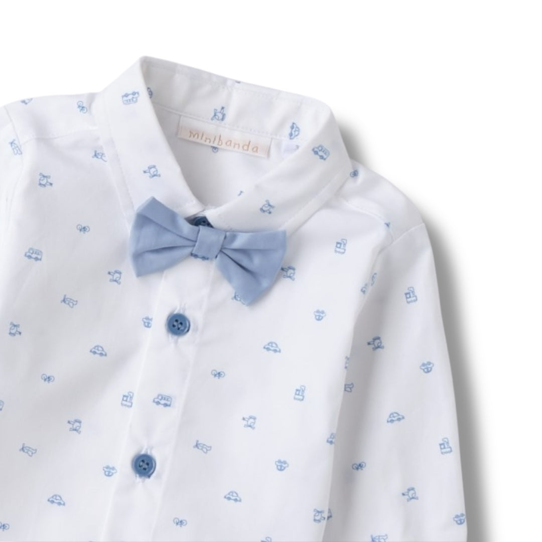 Camicia in 98% cotone con bottoncini a contrasto azzurri e papillon