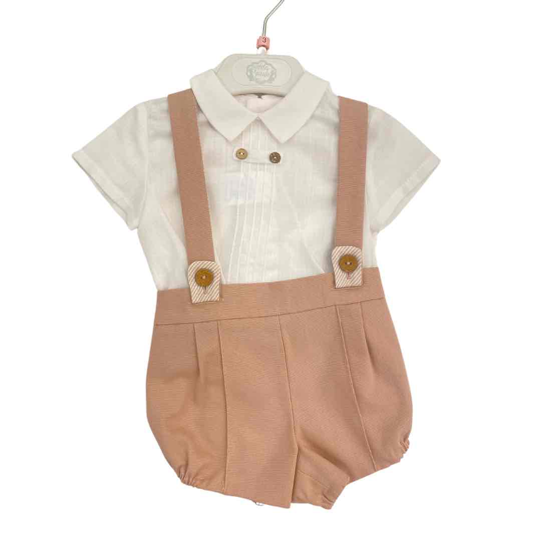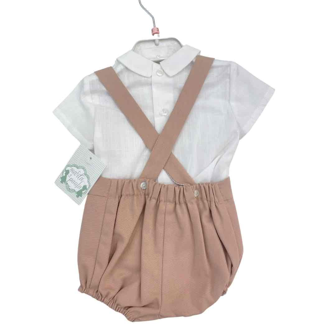 100% Lino con salopette e camicina, abbottonatura retrostante