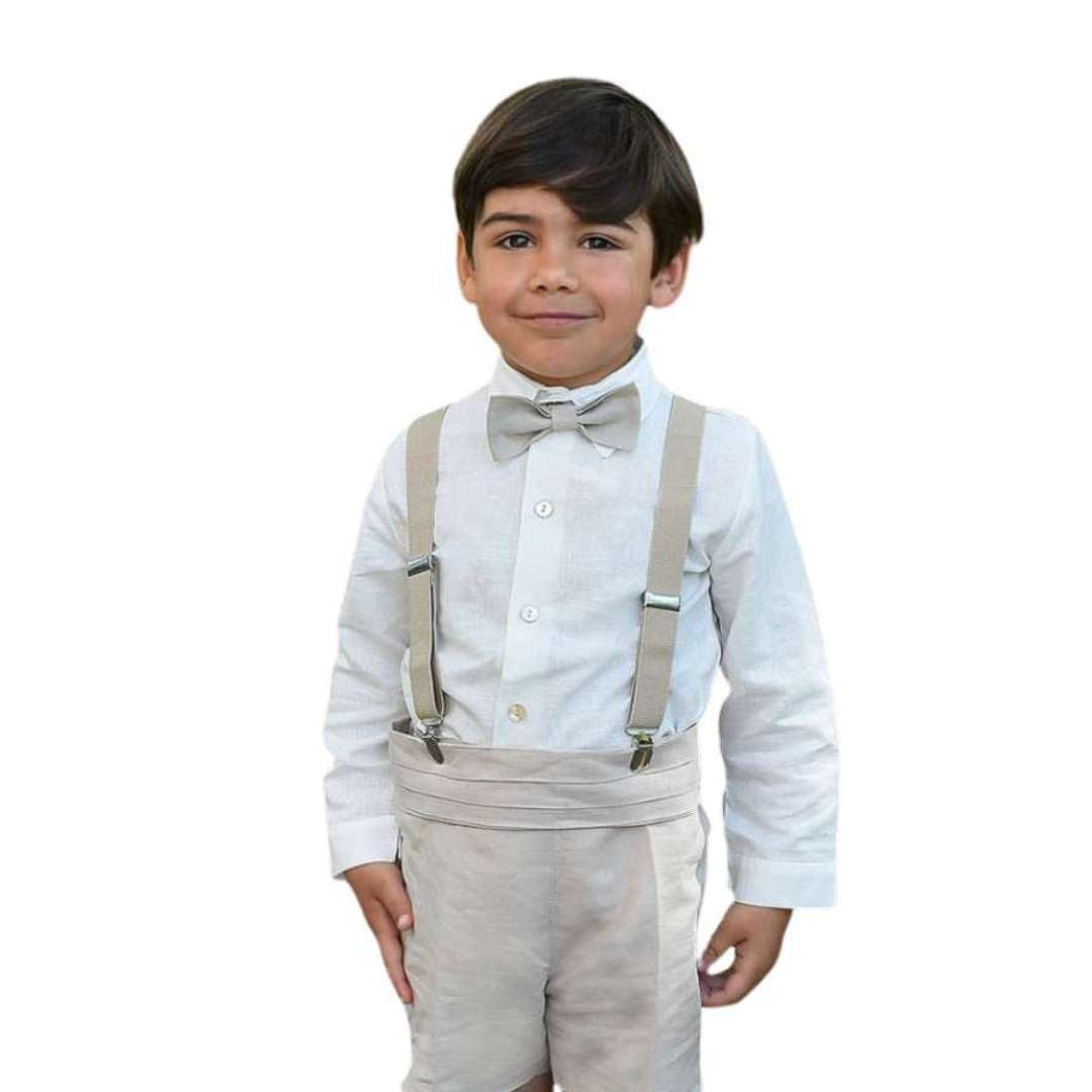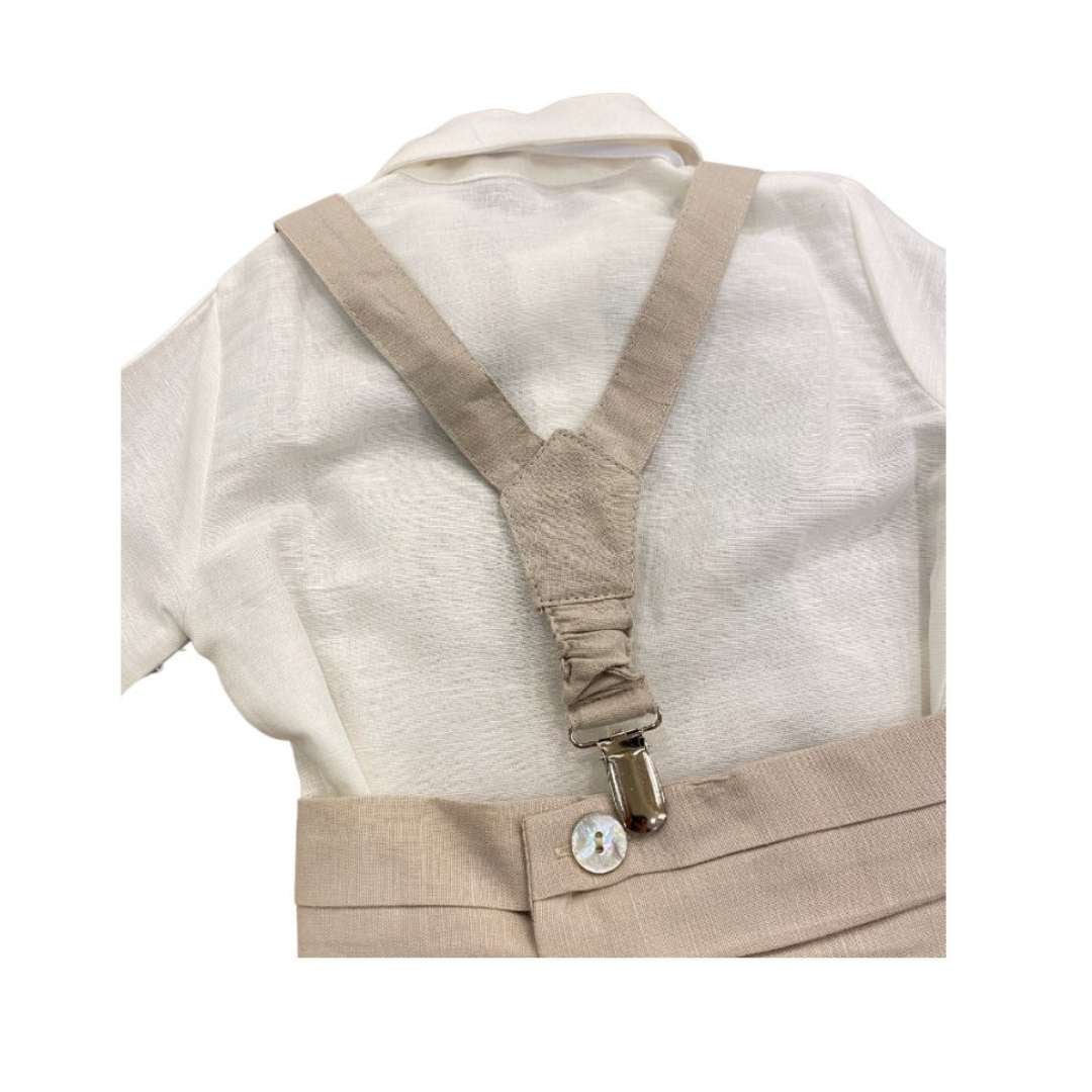 Pantalone 50% Lino 50 % Cotone, Camicia 50%Lino 50 %Cotone, bretelle papillon e fascia in Lino Art 8950 disponibili e Anche Beige