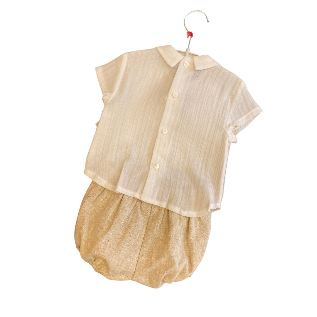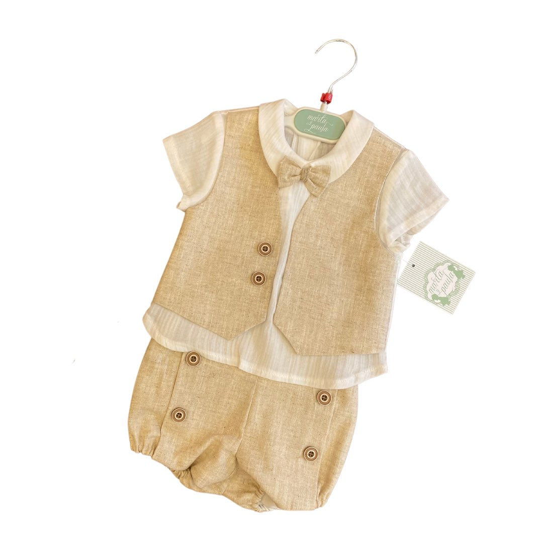 Completo due pezzi con pantaloncini e camicia con finto Gilè e papillon.