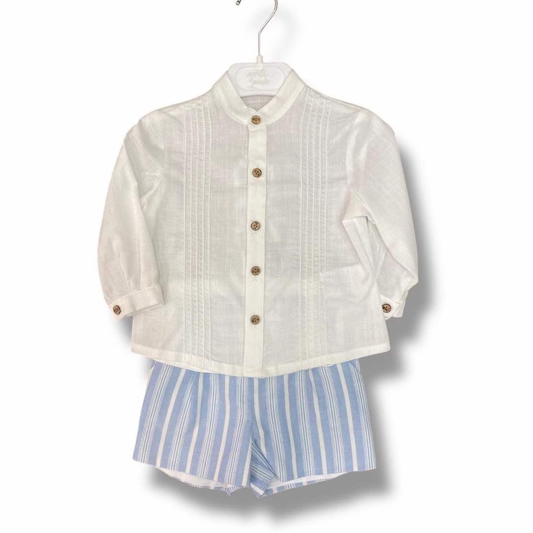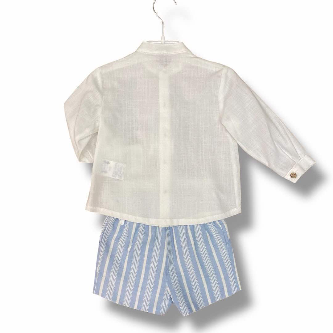 Completo con pantaloncini a righe, collo coreano, Misto lino e cotone