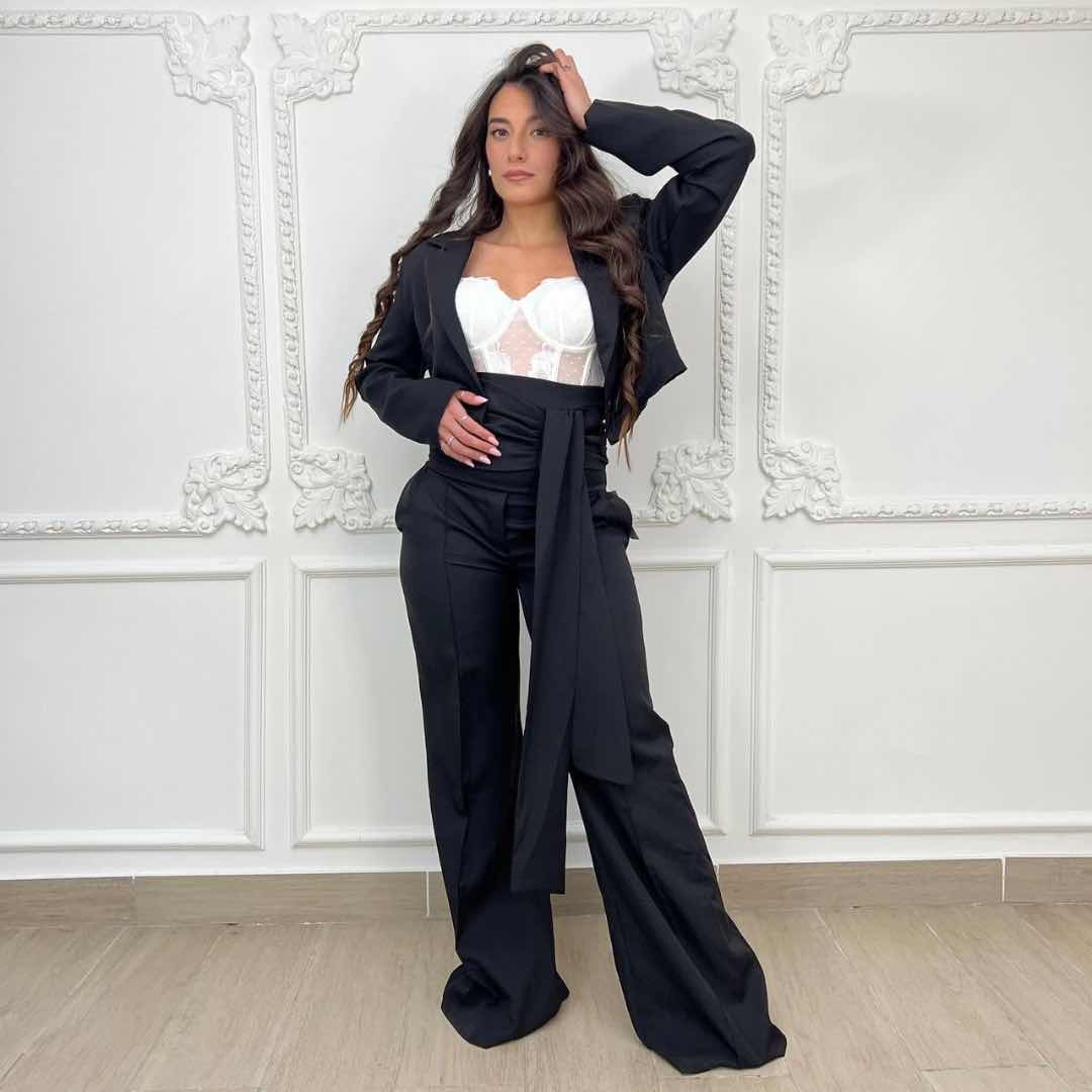 Giacca crop con spalline imbottite. Taglia unica, vestibilità consigliata da XS a L