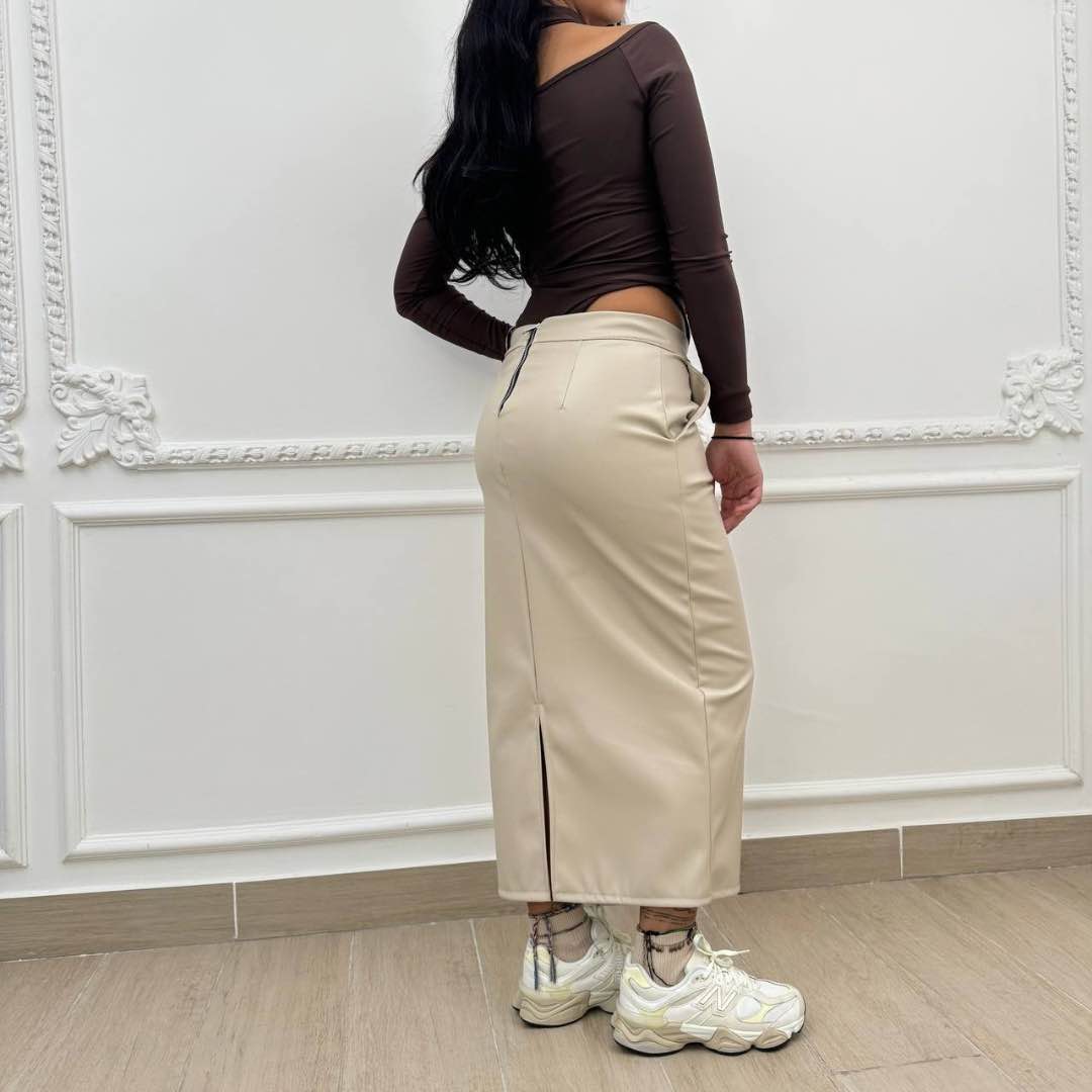 Gonna longuette in ecopelle,vita alta con zip sul retro. Va a taglie