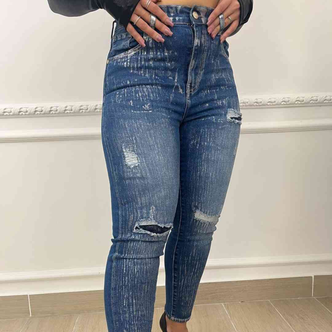 Jeans lavaggio medio con sfumature sul davanti argento.