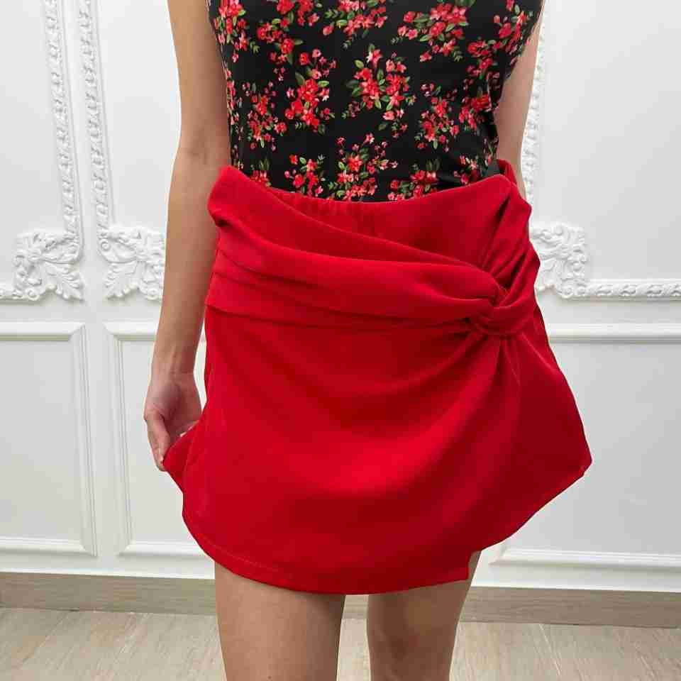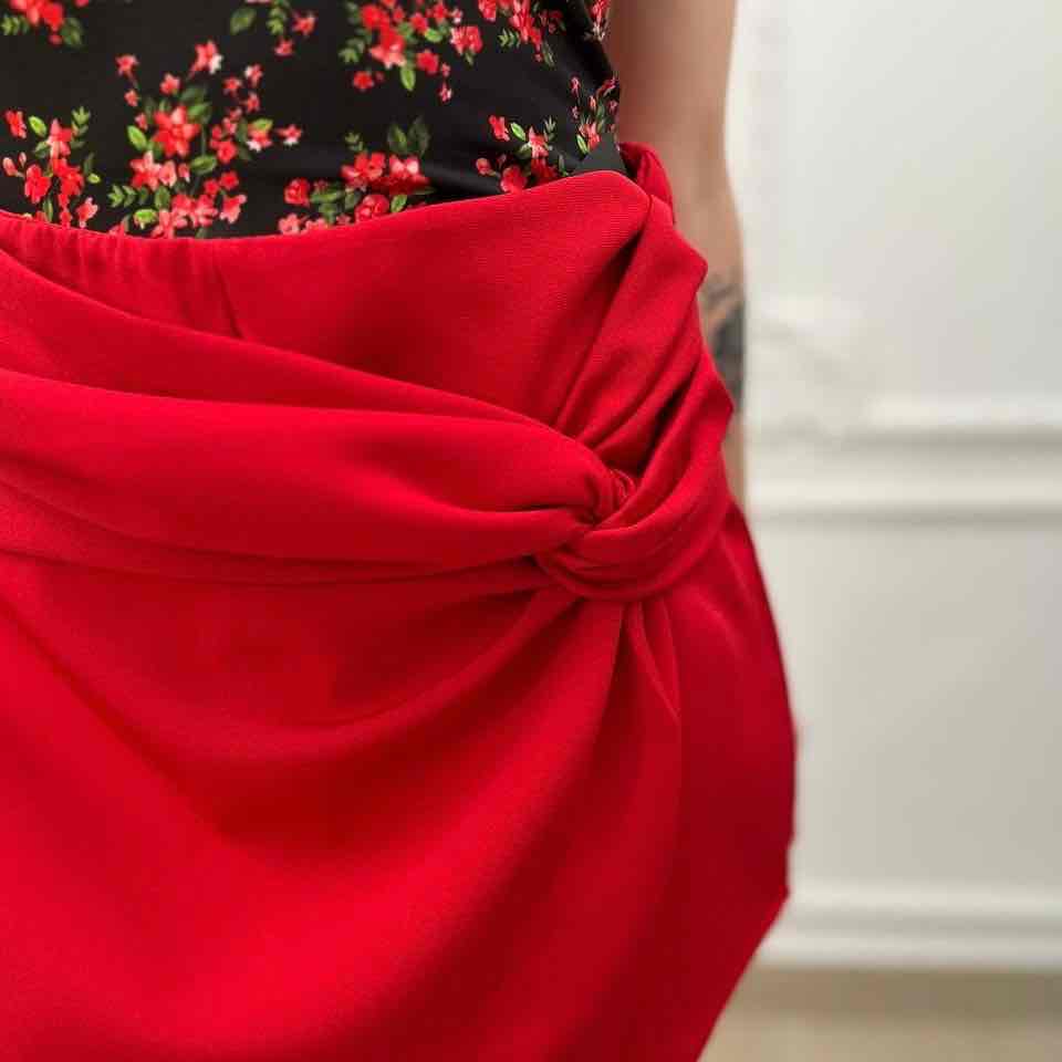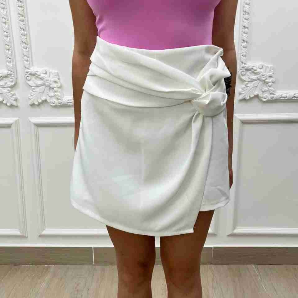 Pantagonna con fantasia nodo sul davanti e chiusura zip sul retro
