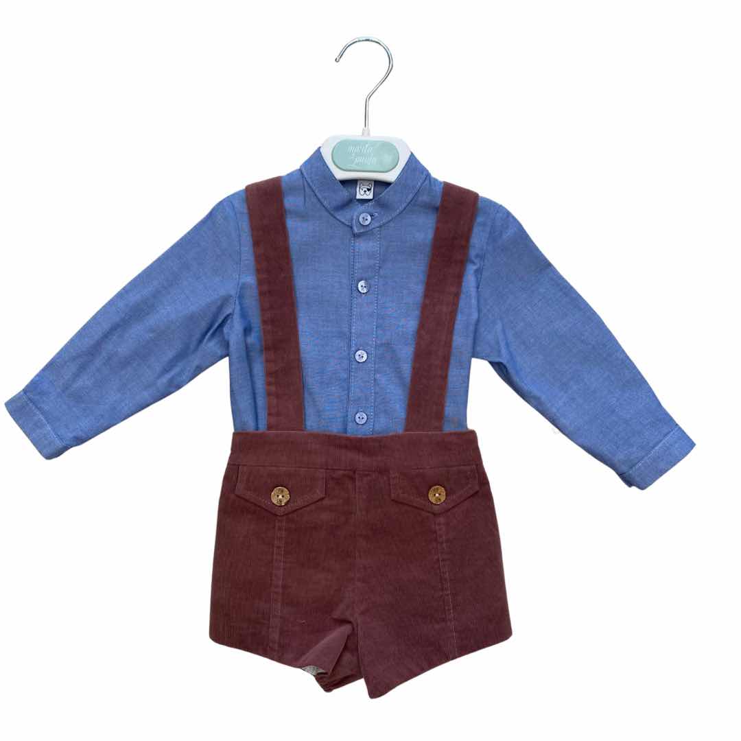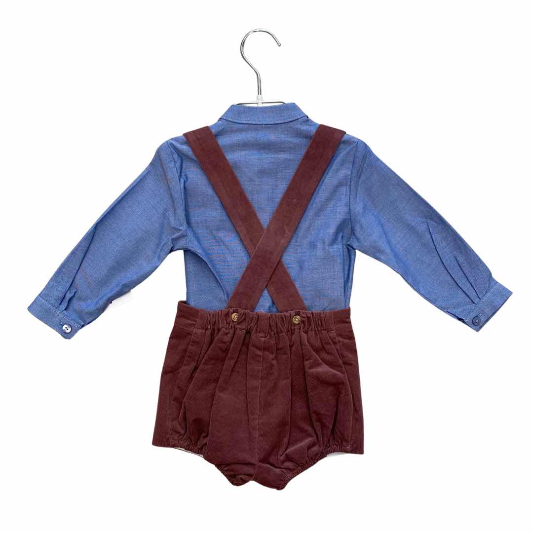Salopette a costina stretta e camicina collo coreano colore blu jeans