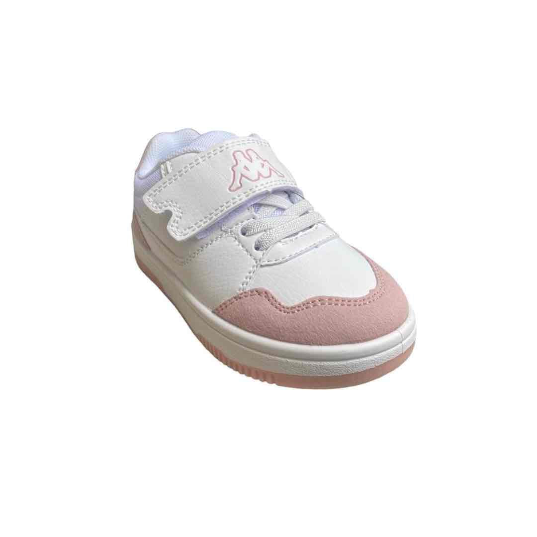 Sneakers KAPPA bianche e rosa con inserti in camoscio. Chiusura a strappo e lacci elastici